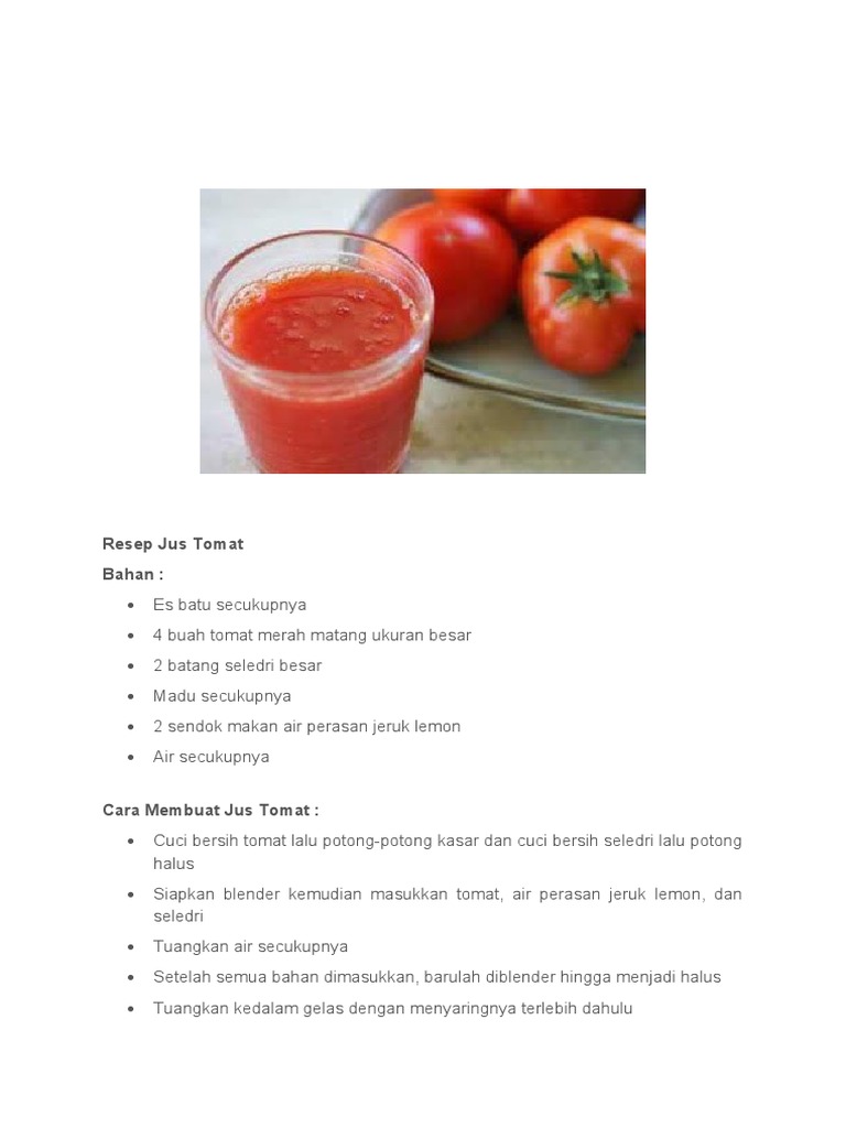 Related : Jus Tomat Resep - 2 tomat matang berukuran sedang atau besar kaldu sayur untuk rasa sedikit hasil pencarian artikel ini dengan:.